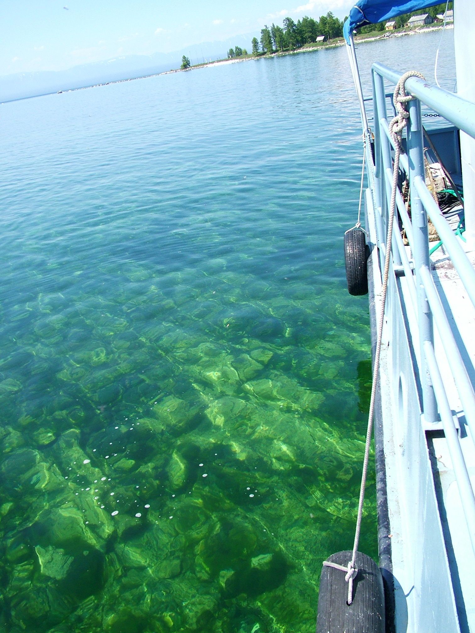 Прозрачная вода под кораблем, дно около 20 м. Источник: НИИ биологии ИГУ