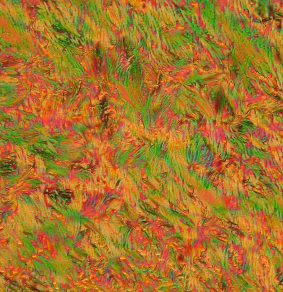 Фото: ЖК-текстура, наблюдаемая в поляризационно-оптический микроскоп. Источник: Алексей Бобровский