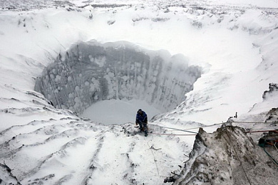 Ранее сообщалось, что за последние несколько лет на Ямале были найдены несколько воронок, сейчас они полностью затоплены. Причина образования кратеров - выброс газа из-под земли. Специалисты предупреждают, что воронки представляют опасность для оленеводческих бригад и вахтовых поселков, а также для автотрасс, железных дорог, трубопроводов.