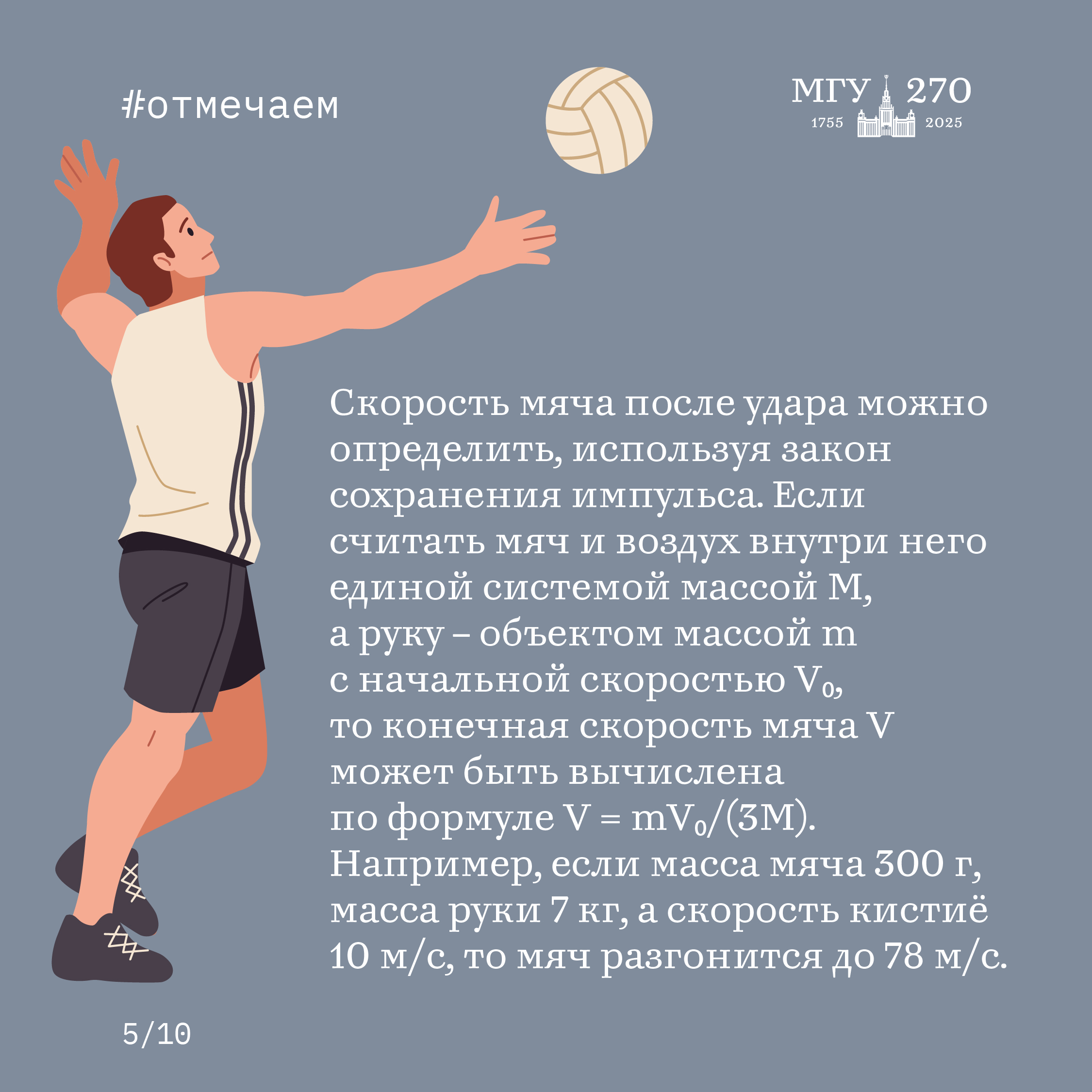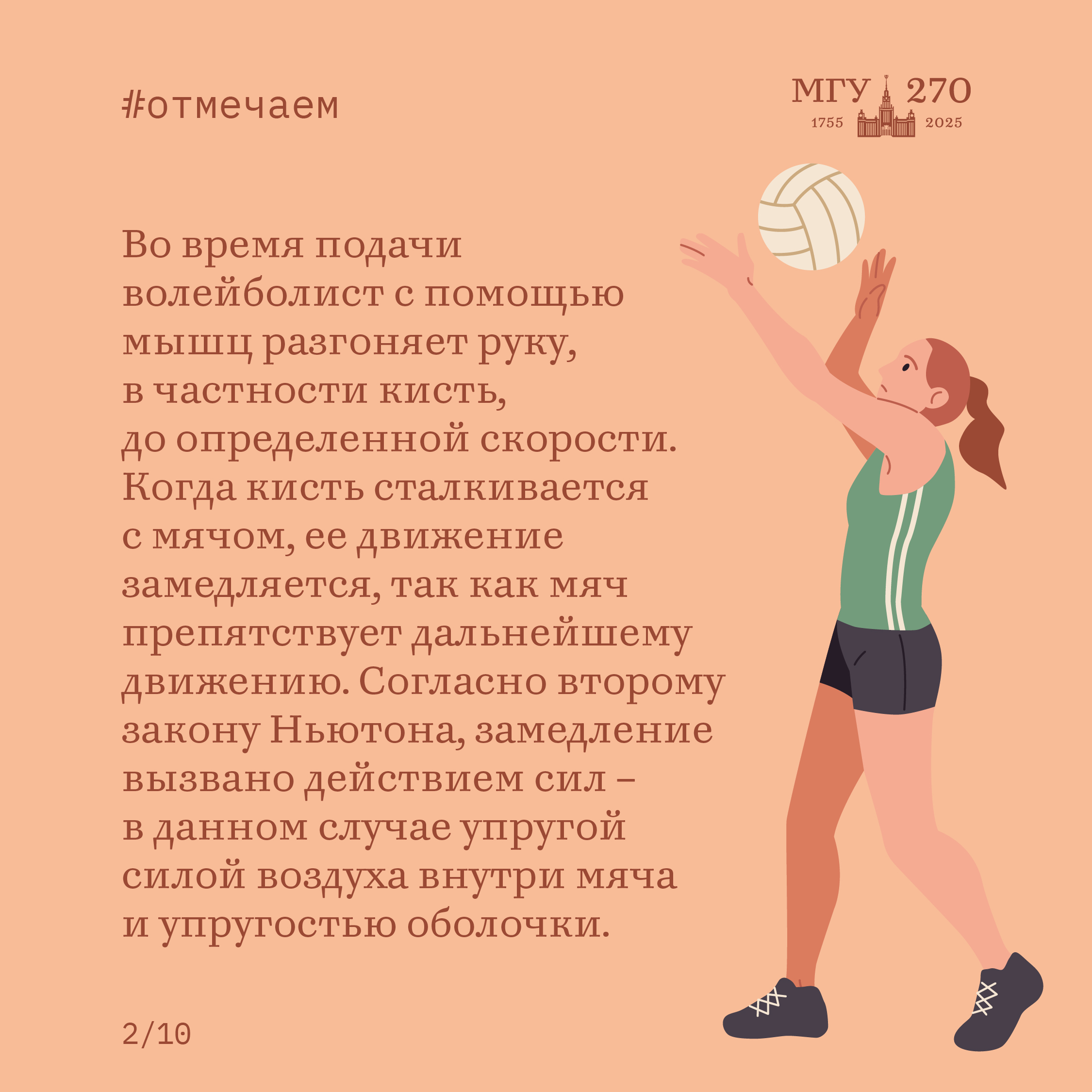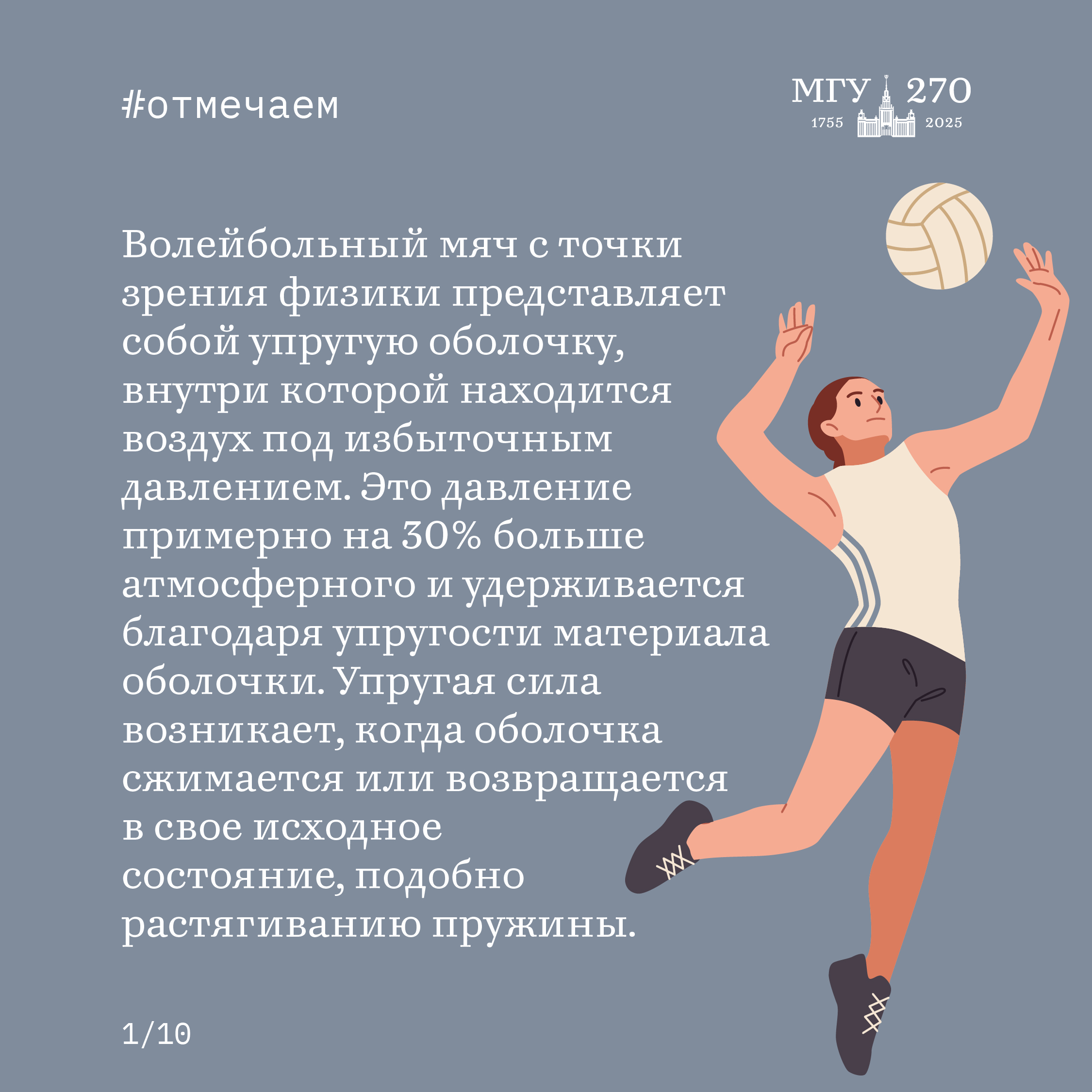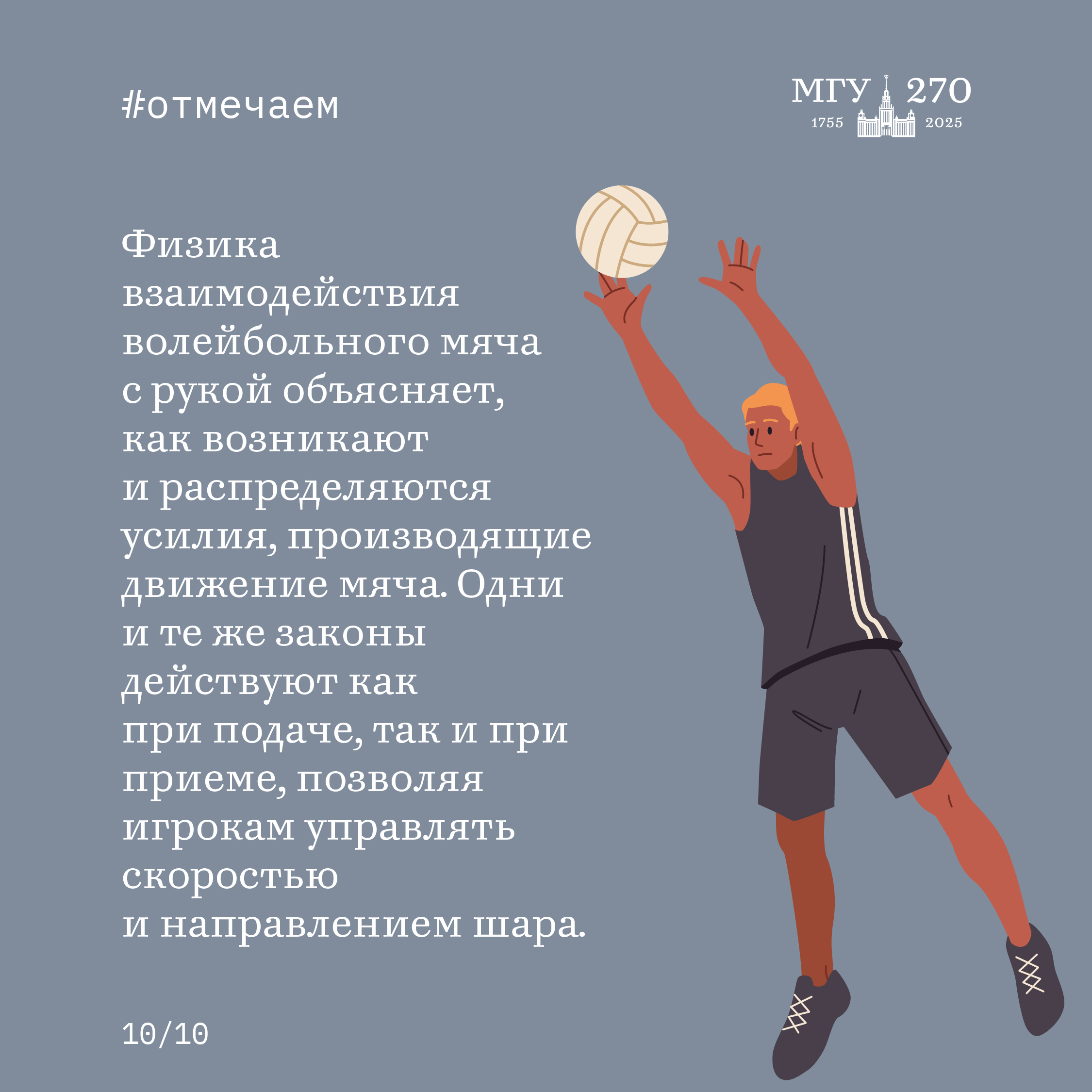 Ассистент кафедры оптики, спектроскопии и физики наносистем физфака МГУ Кирилл Львов рассказал, как законы физики превращают волейбольный мяч в летящую стрелу. Читайте карточки!