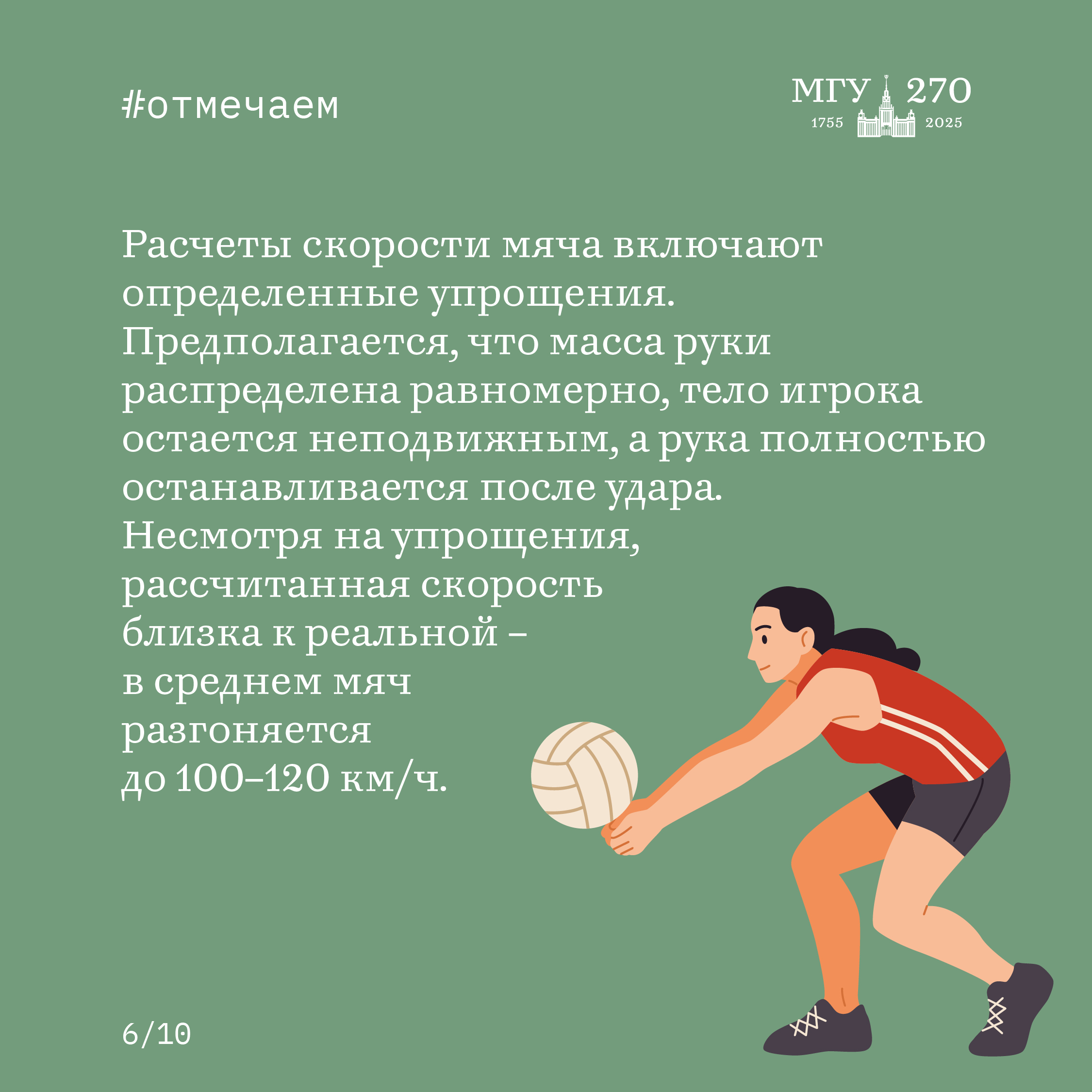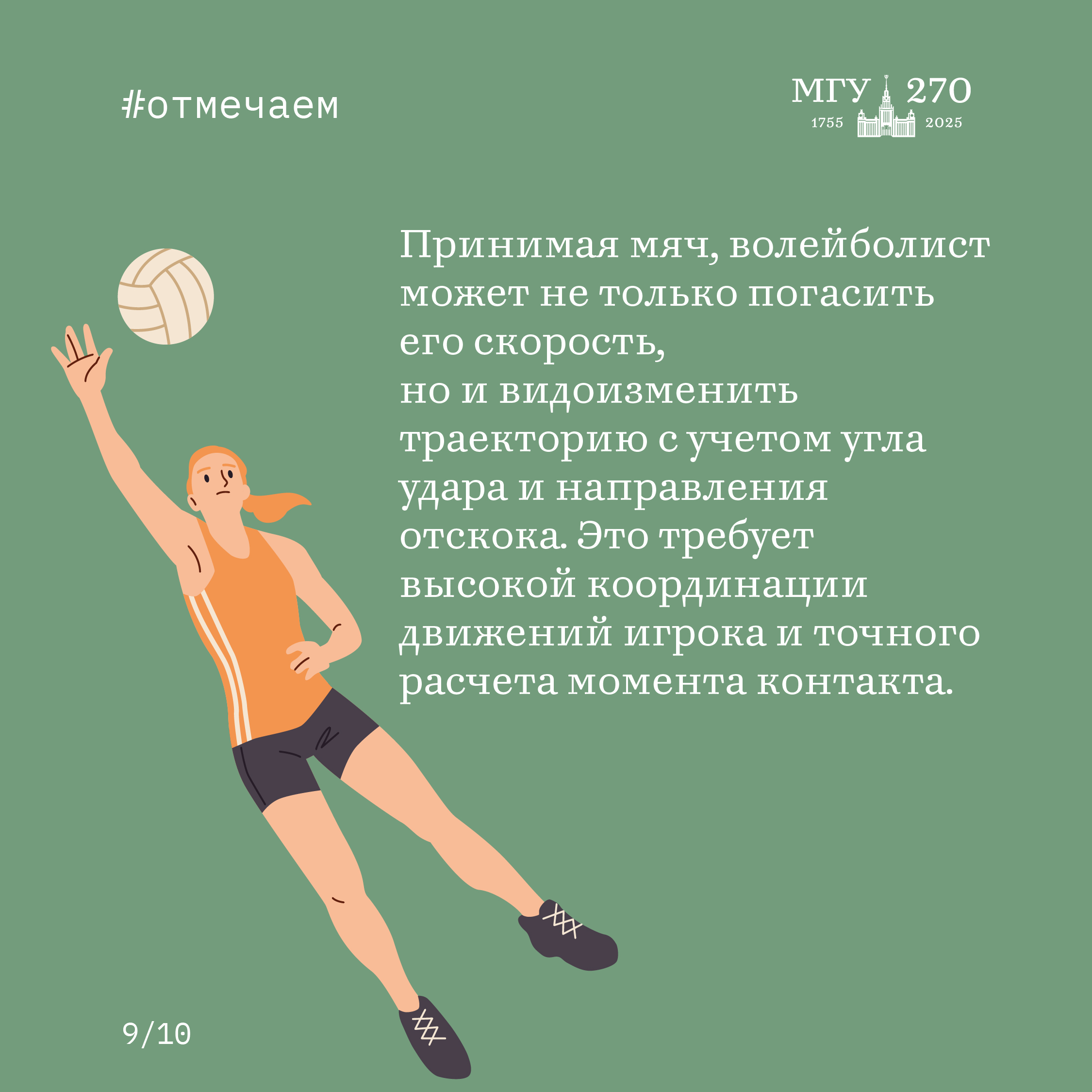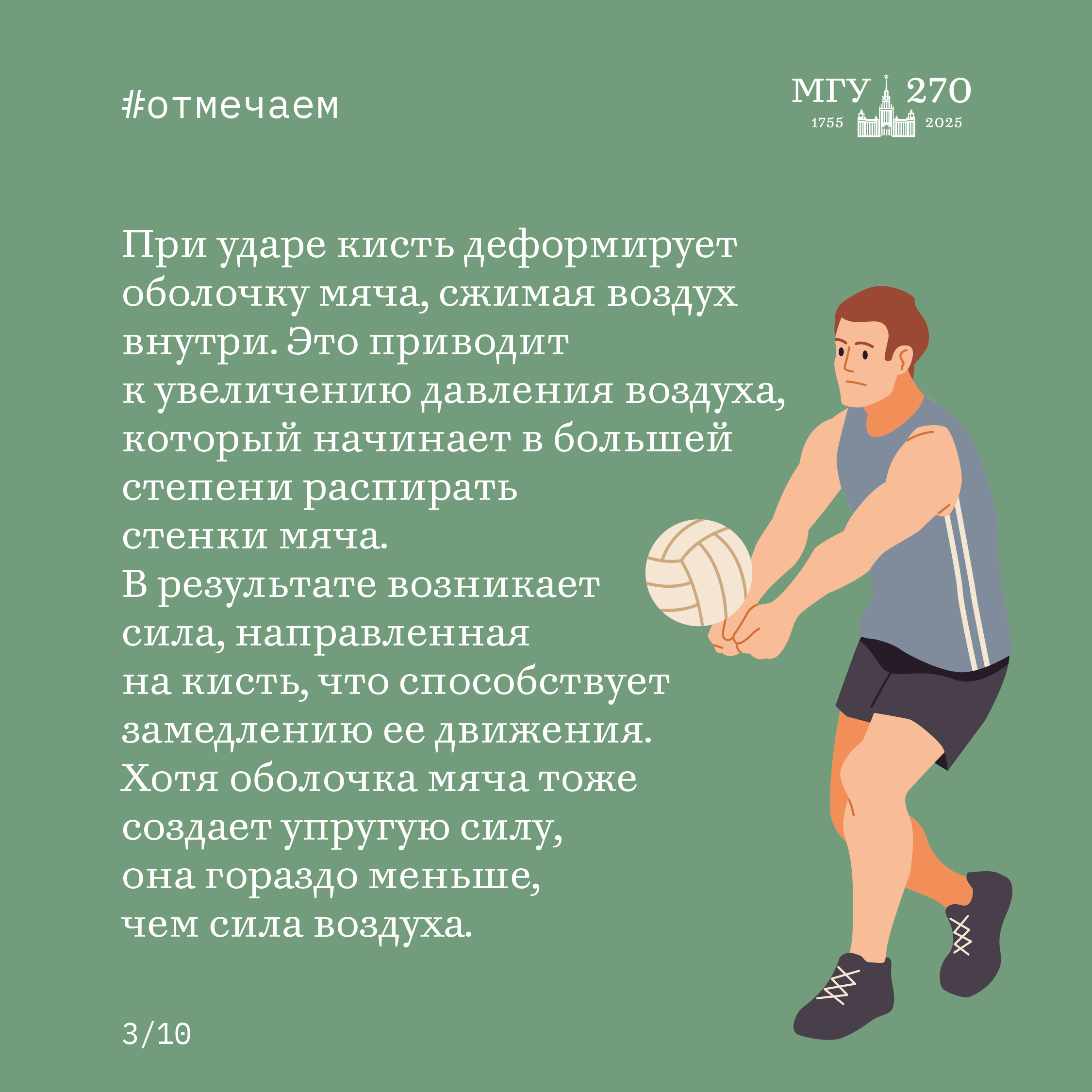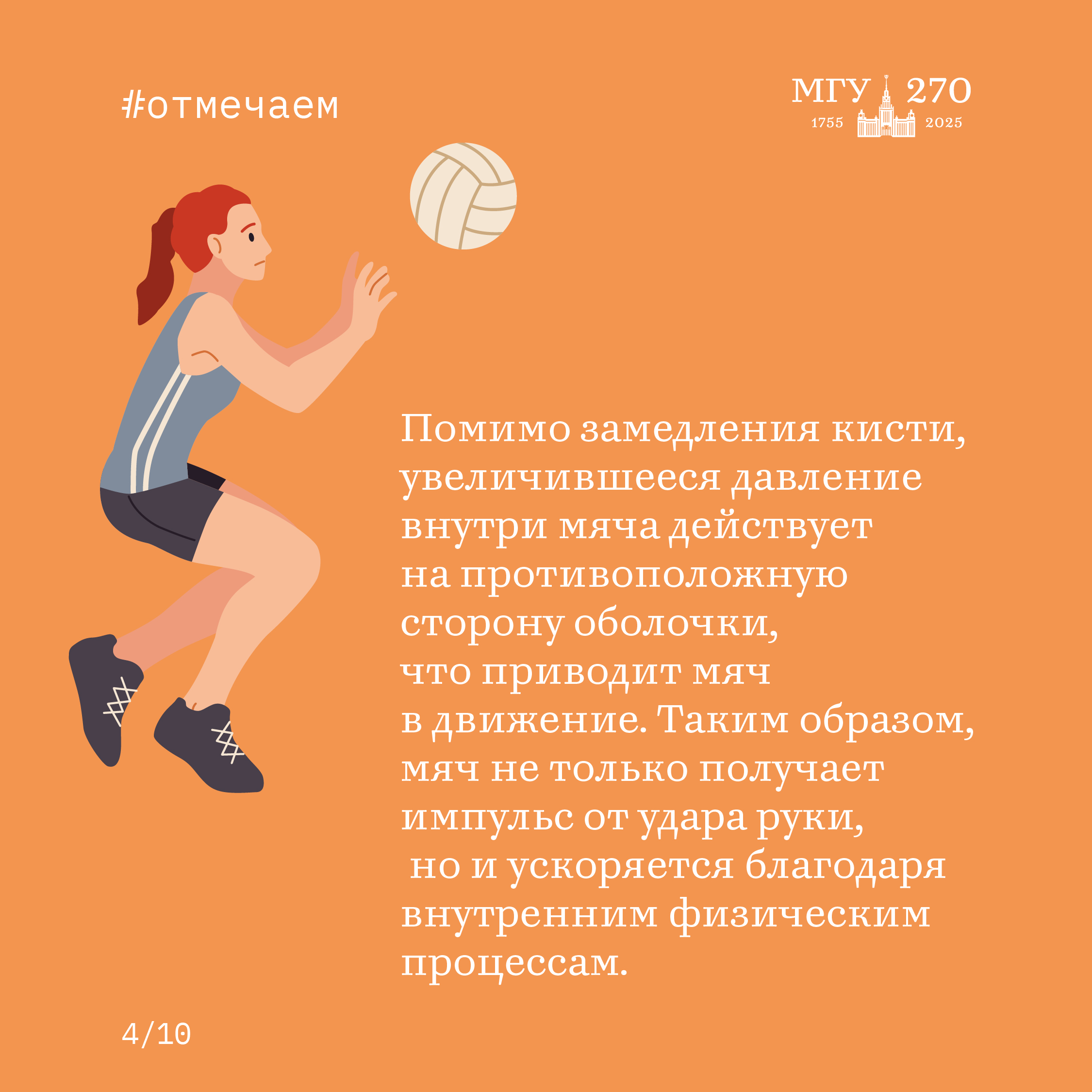 Ассистент кафедры оптики, спектроскопии и физики наносистем физфака МГУ Кирилл Львов рассказал, как законы физики превращают волейбольный мяч в летящую стрелу. Читайте карточки!