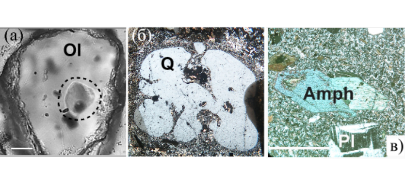 Гибридные метаандезиты Хангара – уникальные породы, которые характеризуются наличием четырех контрастных, крайне редко сосуществующих минеральных ассоциаций. На основе измерений температуры гомогенизации расплавных включений, а также использования комплекса минеральных термометров ученые установили температурные диапазоны формирования минералов каждой из этих ассоциаций: оливины – около 1250 оС; амфиболы и плагиоклазы – 750-1050 оС; хлорит и др. — 220-345 оС. Кроме того, при помощи микрозондового анализа были изучены составы стекол расплавных включений в оливинах, которые соответствуют наиболее ранним глубинным расплавам, внедрившихся на уровень верхней коры.