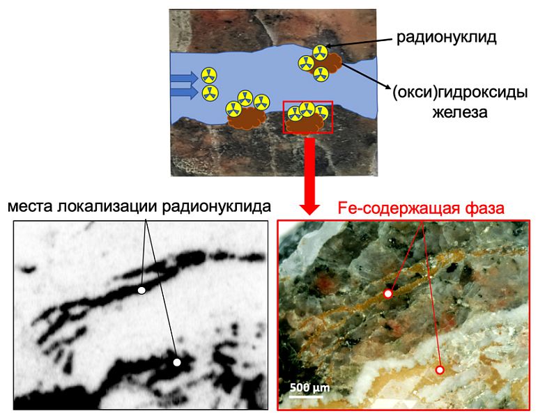 «В работе были смоделированы условия глубинного хранилища: использовали раствор-имитатор подземной воды реального химического состава, а эксперименты предусматривали длительный контакт раствора с породой и продуктами коррозии. В таких условиях железо постепенно переходит в раствор и затем выпадает в виде тонкодисперсных оксидов и гидроксидов, образуя на поверхности минералов тонкослойные пленки сложного состава. Эти вторичные железосодержащие фазы обладают развитой поверхностью и большим числом активных центров, поэтому они способны удерживать ионы актинидов», — рассказала один из авторов исследования, научный сотрудник лаборатории радиохимии ГЕОХИ РАН Анастасия Родионова.