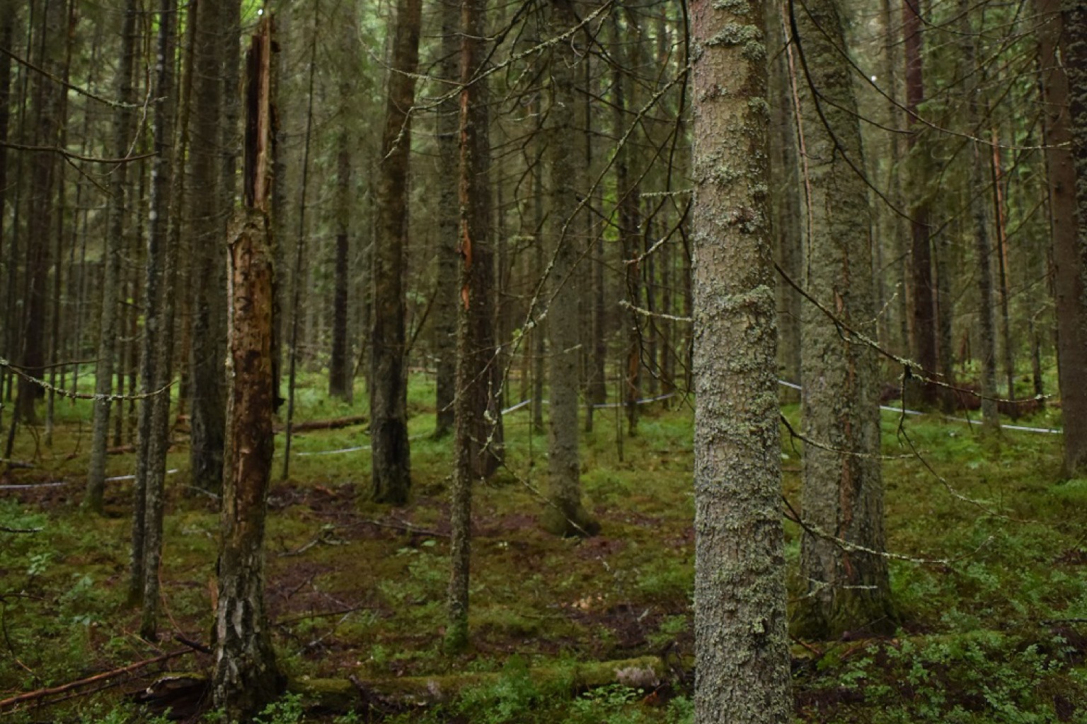 Исследование проводилось в национальном парке «Смоленское Поозерье». Здесь, на северо-западе Смоленской области, на протяжении ХХ века постепенно сокращались площади распахиваемых земель. В результате естественных сукцессий на значительной части заброшенных сельскохозяйственных угодий наблюдается восстановление леса с преобладанием сосны и ели. При этом сосна заселяет участки с супесчаными, самыми сухими и обедненными элементами питания почвами. Ель появляется на более богатых и увлажненных супесчаных или легкосуглинистых почвах.