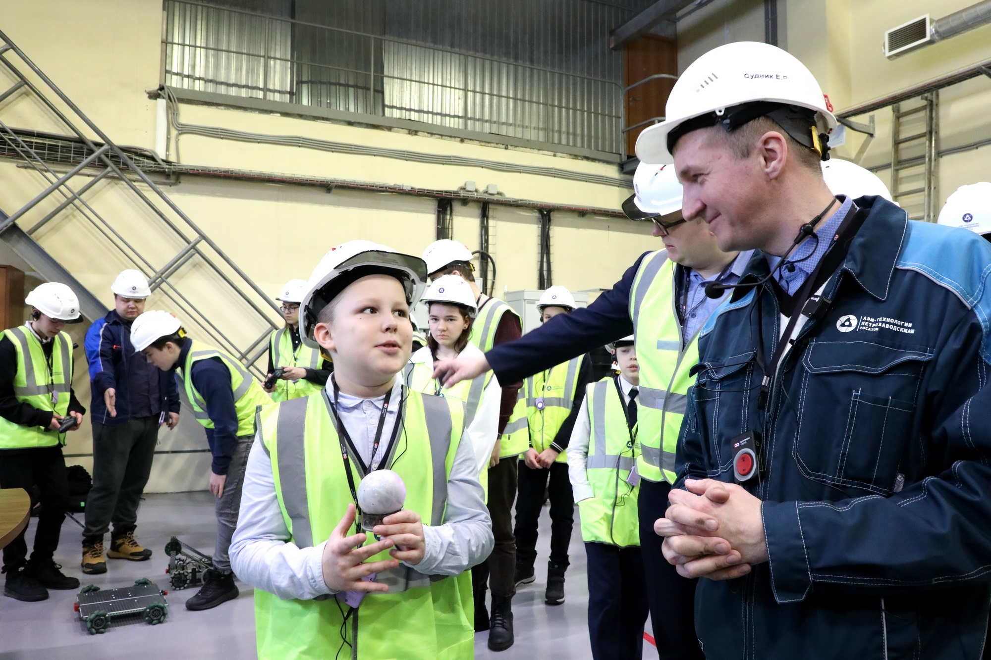 Первыми посетителями лаборатории стали школьники и студенты Петрозаводска, увлекающиеся робототехникой. Они своими глазами увидели, как современные технологии меняют производственные процессы (роботов в сборочно-сварочном цехе, а также аддитивные и VR-технологии и беспилотный транспорт для перемещения по цехам в новой лаборатории), и представили свои разработки, которые в перспективе могут найти применение на заводе. В их числе транспортные роботы с использованием «умных» систем передвижения и лазерных датчиков.