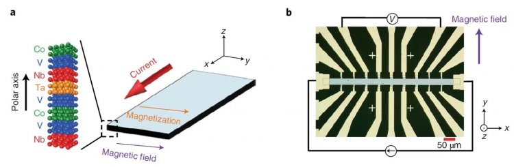 В результате в сверхрешетке Nb/V/Co/V/Ta сосуществуют не только сверхпроводимость и ферромагнетизм, но и есть возможность контролировать плотность тока, протекающего через микропроволоку, изменяя направление намагниченности слоя Co и полярность приложенного тока. Это позволило ученым продемонстрировать сверхпроводниковый диодный эффект в состоянии, когда нет внешних воздействий магнитным полем. При этом контролировать направление СДЭ можно с помощью изменения направления намагниченности слоя ферромагнетика.