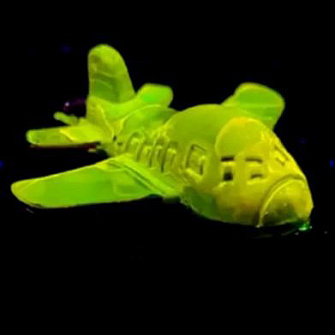 Чтобы продемонстрировать применимость своей системы в термометрии, ученые покрыли поверхность игрушечного металлического самолетика тонкой пленкой комплекса европия и тербия, а затем нагрели модельку с помощью строительного фена. В результате специалисты наблюдали градиентное изменение цвета: спереди, откуда шел теплый поток, температура была выше, и европий светился оранжевым, а в хвосте, где меньше тепла, — преобладало зеленое свечение тербия.