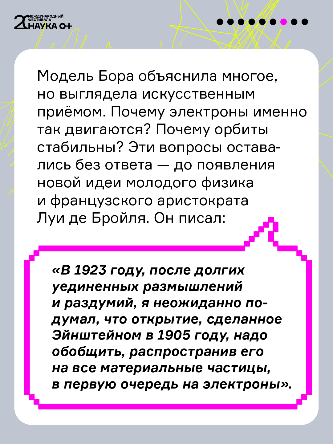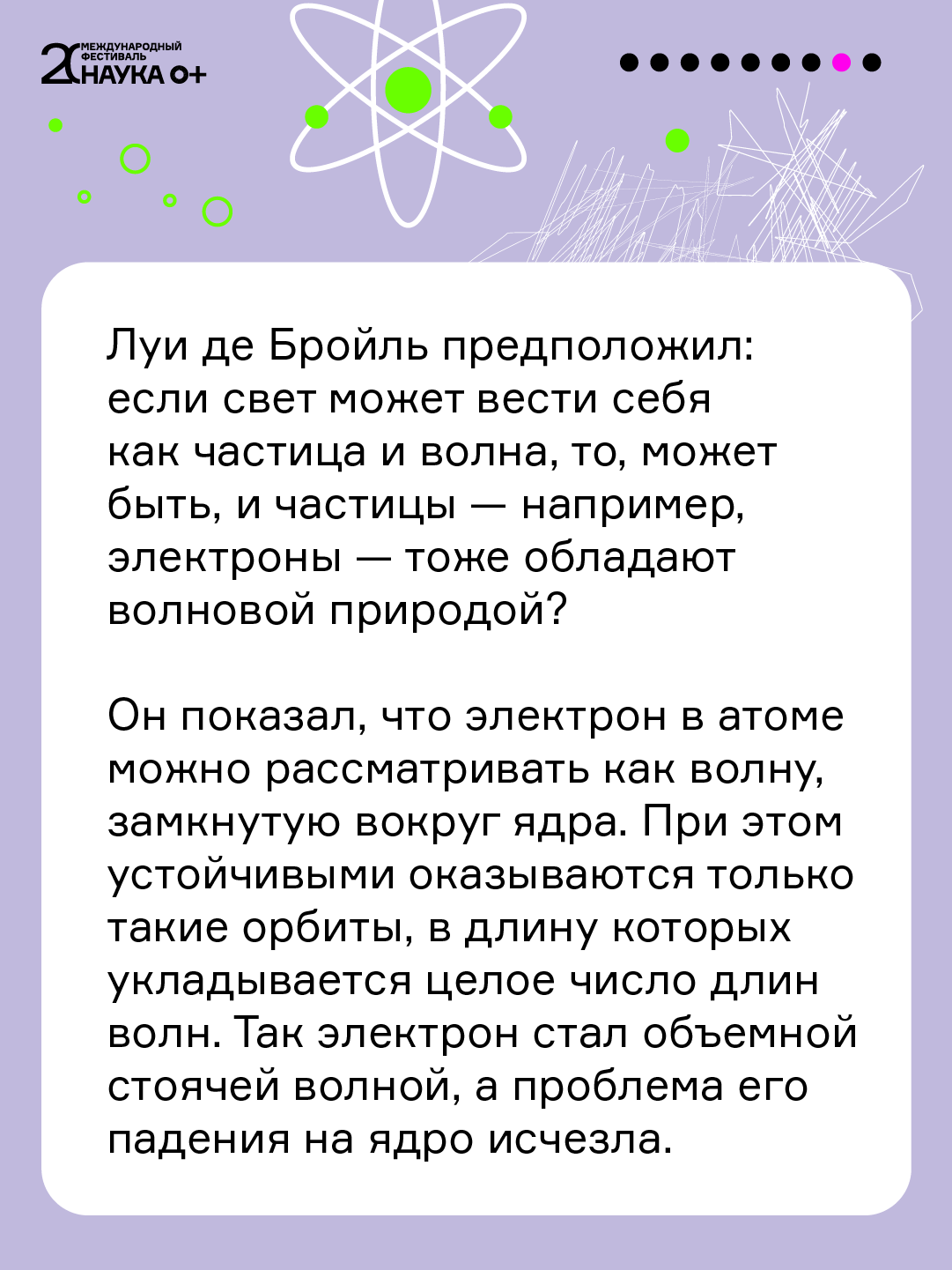Сегодня кажется очевидным, что атом — это ядро и электроны вокруг него. Но сто лет назад эта идея казалась фантастикой. Давайте посмотрим, как появились атом Бора и волны де Бройля. История, которая перевернула физику XX века, — в карточках.