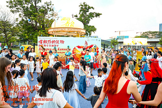 На закате студенты университета исполнили зажигательные танцы народов мира – от татарских народных танцев до танских придворных танцев, воссозданных по фрескам пещер Могао. Вечер украсили огни сцены на озере и лиричные композиции русского рока, известные в Китае.