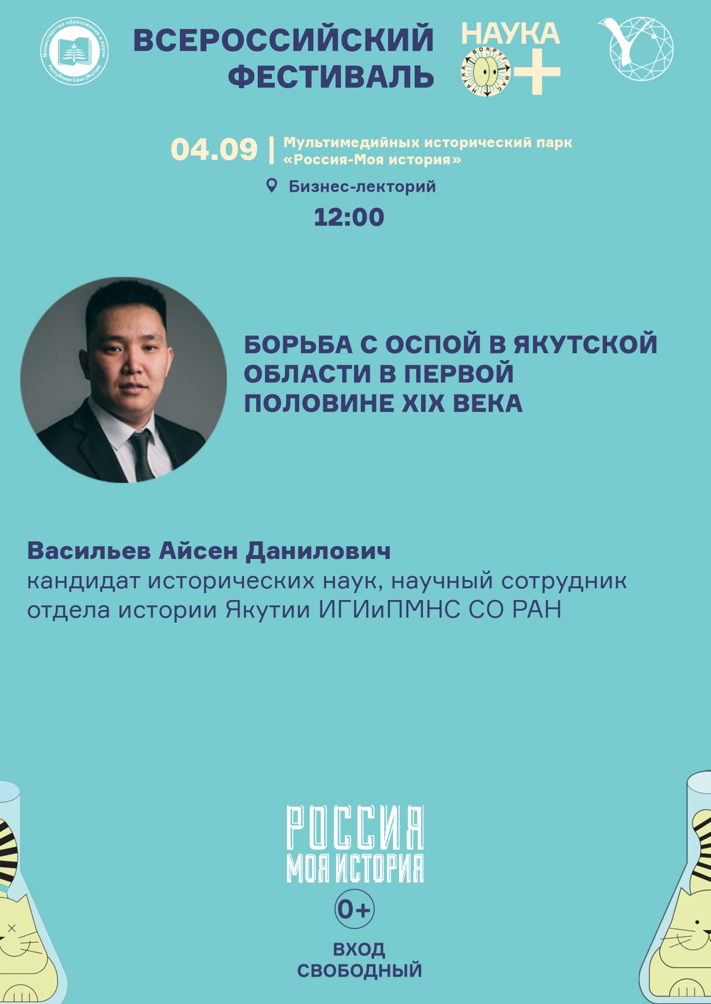 "На лекции впервые на основе архивных материалов прозвучит история организации массового оспопрививания в Якутской области в первой половине XIX в. Будут освещены первые практики вакцинопрофилактики на северо-восточной периферии Российской империи, деятельность местных органов власти, занимавшихся внедрением и распространением оспопрививания, где также прозвучит роль якутского областного начальника И.Г. Кардашевского в создании комитета по борьбе с оспой. Будет проведена характеристика становления системы подготовки лекарских учеников из числа местного населения для проведения вакцинации, показаны плюсы и минусы этого нововведения.