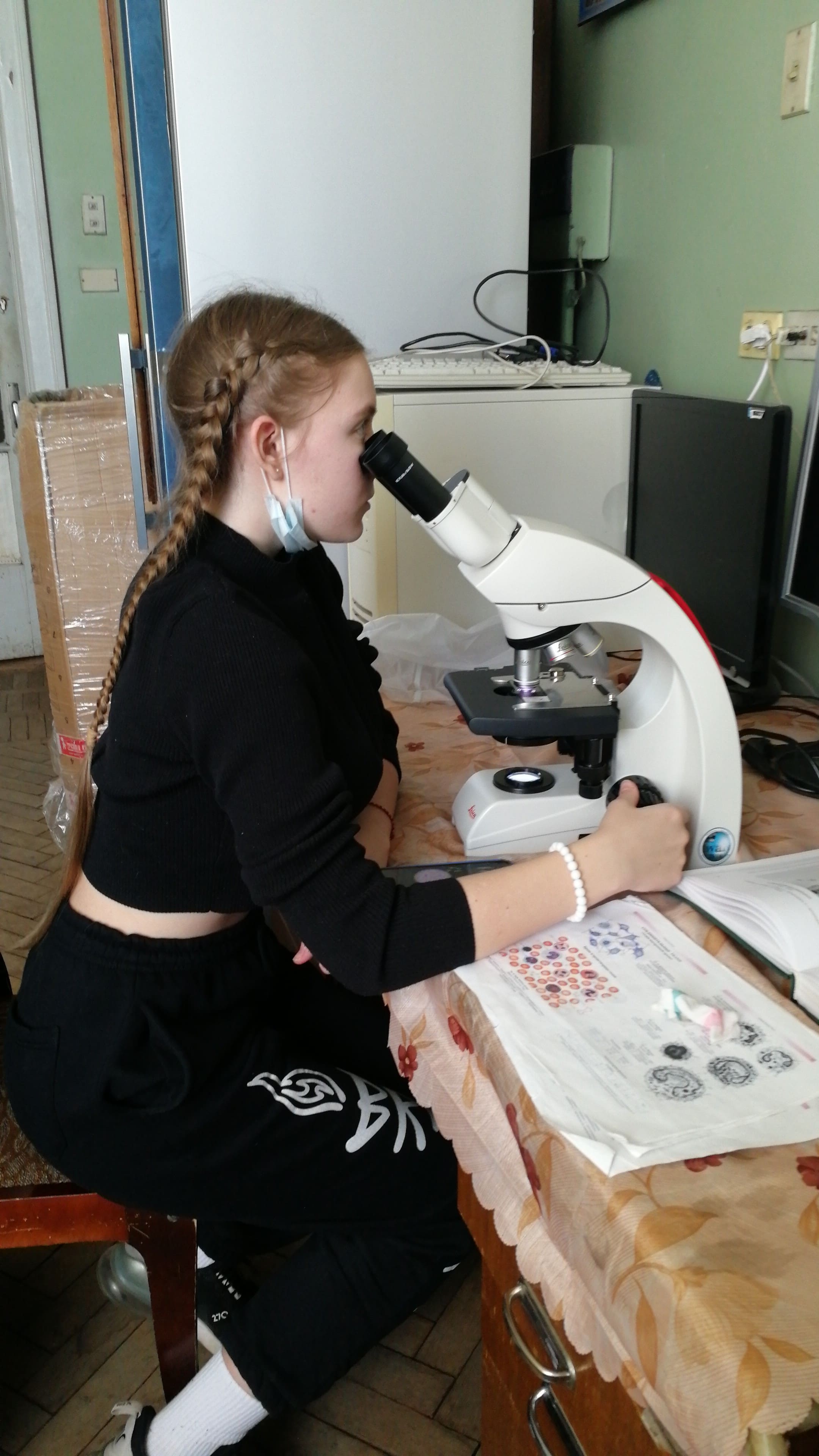 Далее экскурсия по кафедре – демонстрация некоторого классического и современного оборудования по клеточной биологии и гистологии: культурального бокса, микротомов разных поколений, сортера, флуоресцентного микроскопа.