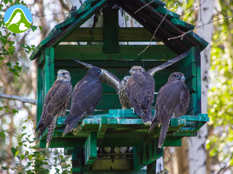 Для соколят заранее были установлены хэки (искусственные гнёзда) на месте выпуска в природу. А для птенцов филина сделали большой вольер в Бажовских местах. Каждый день рядом с хэками и с вольером находился сотрудник Холзана с помощниками-волонтëрами, которые занимались кормлением птенцов и вели наблюдения за их поведением.