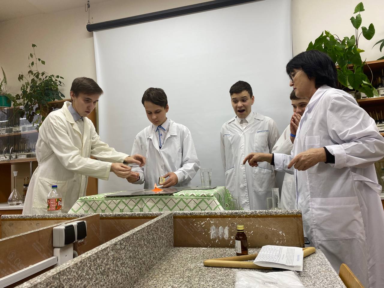 В лабораториях школьники увидят эффектные химические эксперименты иллюстрирующие: