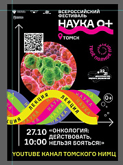Лекция «Онкология: действовать, нельзя бояться!» адресована школьникам. Ученые НИИ онкологии Томского НИМЦ расскажут о последних научных достижениях в биологии и медицине, связанных с причинами возникновения, механизмами развития и клиническими проявлениями онкологических заболеваний, а также познакомят зрителей с разработкой методов диагностики, лечения и профилактики. Видеолекция будет опубликована на Youtube канале Томского НИМЦ