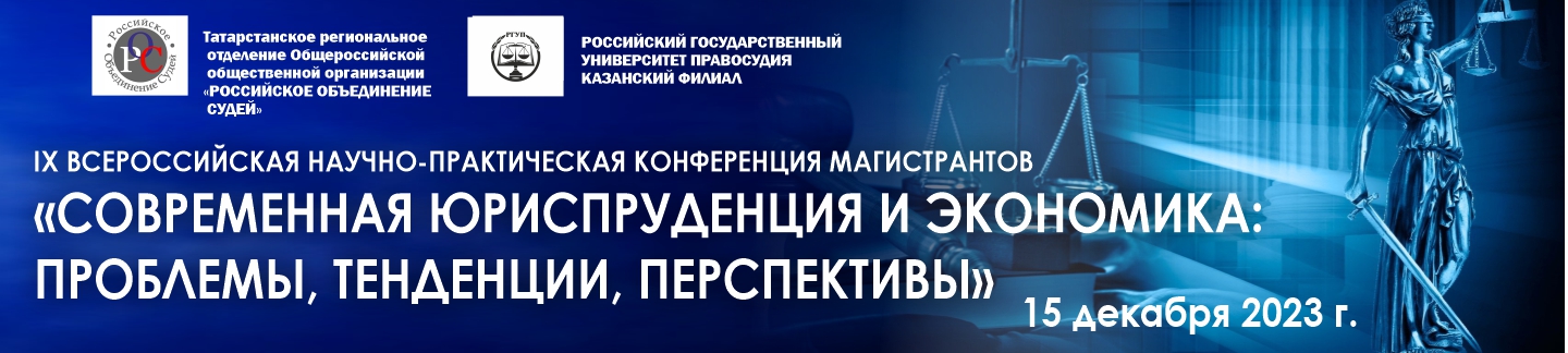 Приглашаем вас принять участие в VIII Всероссийской научно-практической конференции магистрантов «Современная юриспруденция и экономика: проблемы, тенденции, перспективы», которая состоится в смешанном формате 15 декабря 2023 г. Организаторами конференции являются Татарстанское региональное отделение Общероссийской общественной организации «Российское объединение судей» и Казанский филиал ФГБОУВО «Российский государственный университет правосудия».