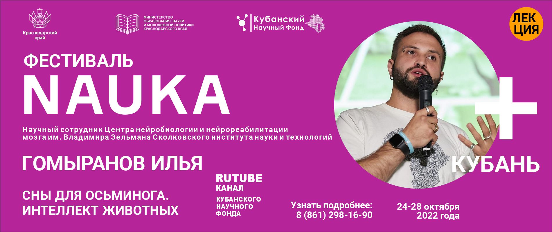 Об этом расскажет Илья Гомыранов – биолог, куратор научно-популярных программ и школьных проектов Сколковского университета науки и технологий, лауреат премии «За верность науке». Автор статей о животных и растениях, нескольких книг - бестселлеров о животных. Постоянный̆ эксперт программ на российском радио и телевидении. Участник свыше 30 биологических экспедиций в различные регионы России и мира.
