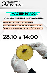 Будет проведен мастер-класс по анатомированию крупного насекомого, а также поиск и демонстрация видоспецифичных паразитов. Мастер-класс проведут ученые НИИ фармакологии и регенеративной медицины им. Е.Д. Гольдберга Томского НИМЦ.