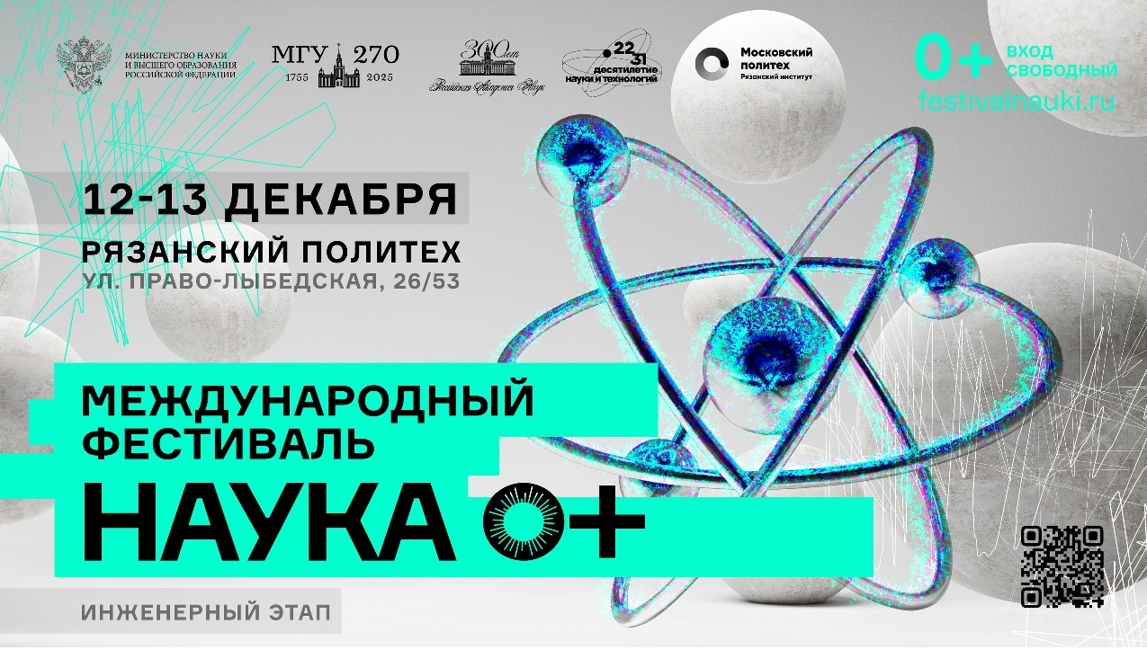 Приглашаем учащихся школ и студентов СУЗов принять участие в региональном инженерном этапе Международного фестиваля науки "Наука 0+", который пройдет в Рязанском Политехе 12-13 декабря! Это крупнейший просветительский проект в мире и одно из ключевых событий десятилетия науки и технологий в Российской Федерации.